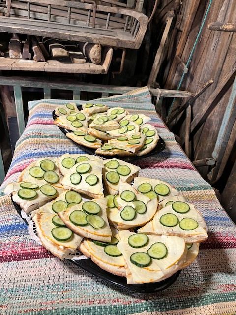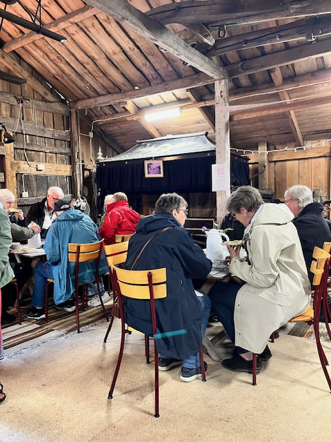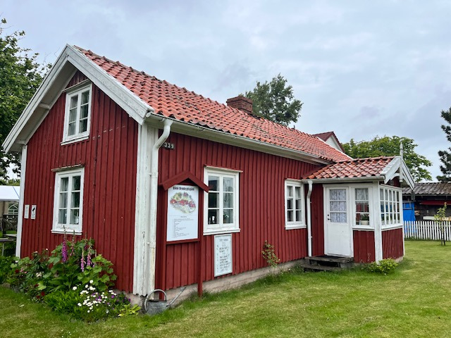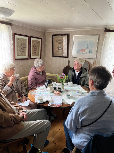 Vi kom fram till ett regnigt Göteborg och åkte bilfärjan över till Hönö. Vårt första stopp var vid Hönö hembygdgård där vi fick gott fika med bagebröd (lokalt hembakat Hönökaka). På grund av regnet fick vi sitta inomhus i det fina gamla båtmanstorpet och några av oss fick sitta i den fint dukade i ”veboa”. Damerna som serverade oss hade bakat det goda brödet. Hembygdsgården bestod av flera fina gamla hus med inredning från 1800-talet. Där fanns också en lokal med inredning från August i Lyckas – speceri- och diverseaffär.